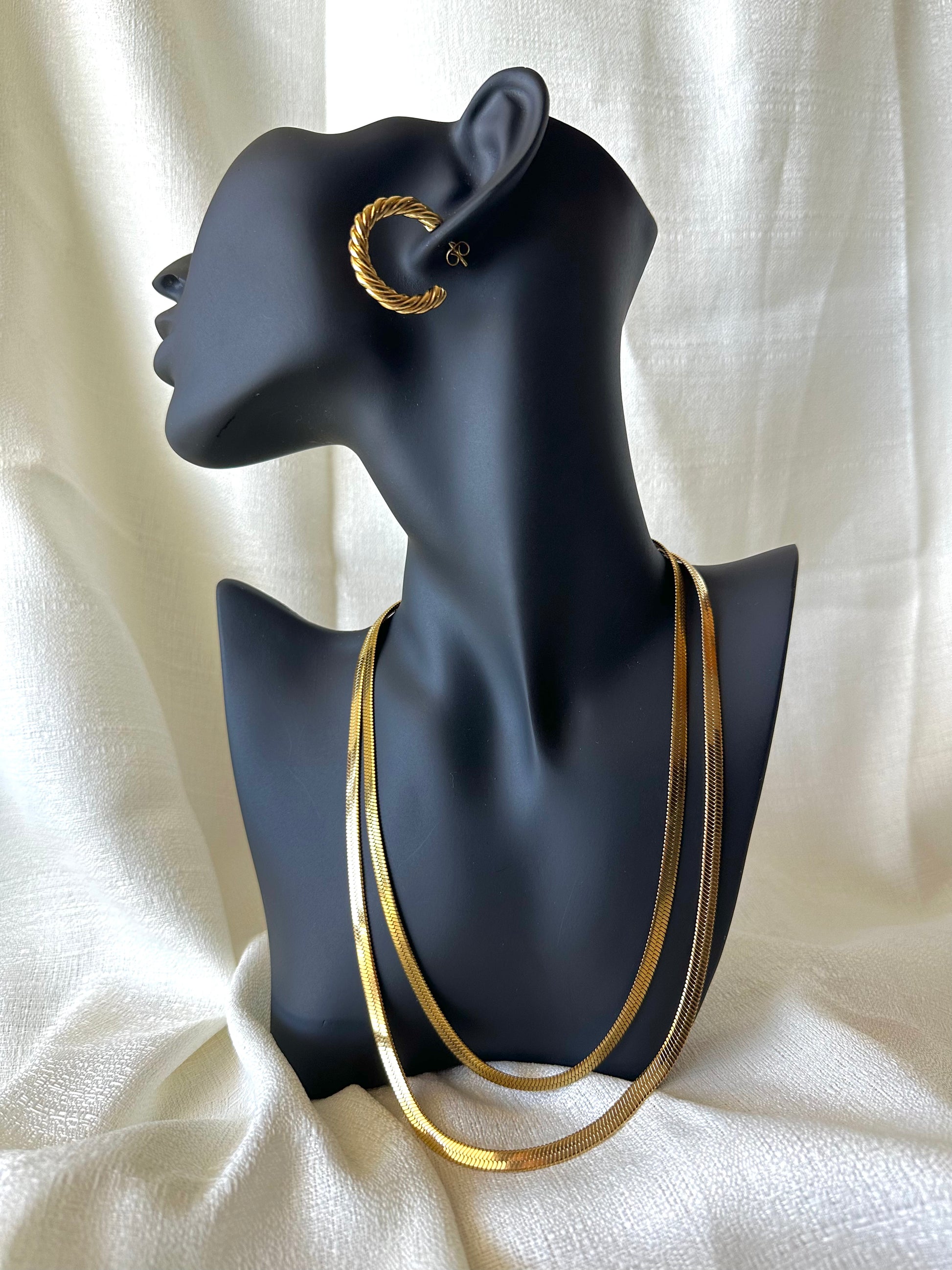 カジュアルにもフォーマルにもフィットする1本。これ1本でも十分な存在感がありますが、重ね付けで更にゴーシャス感を出せるアイテムです。