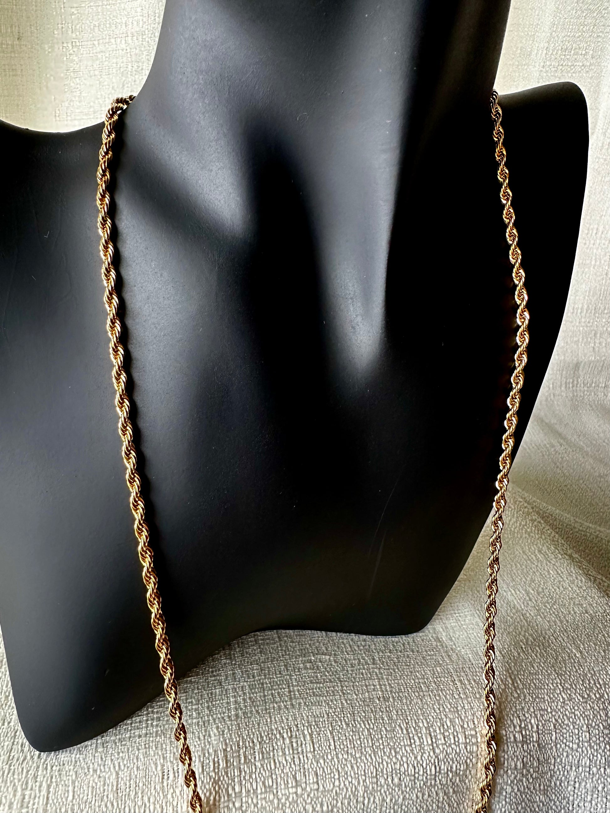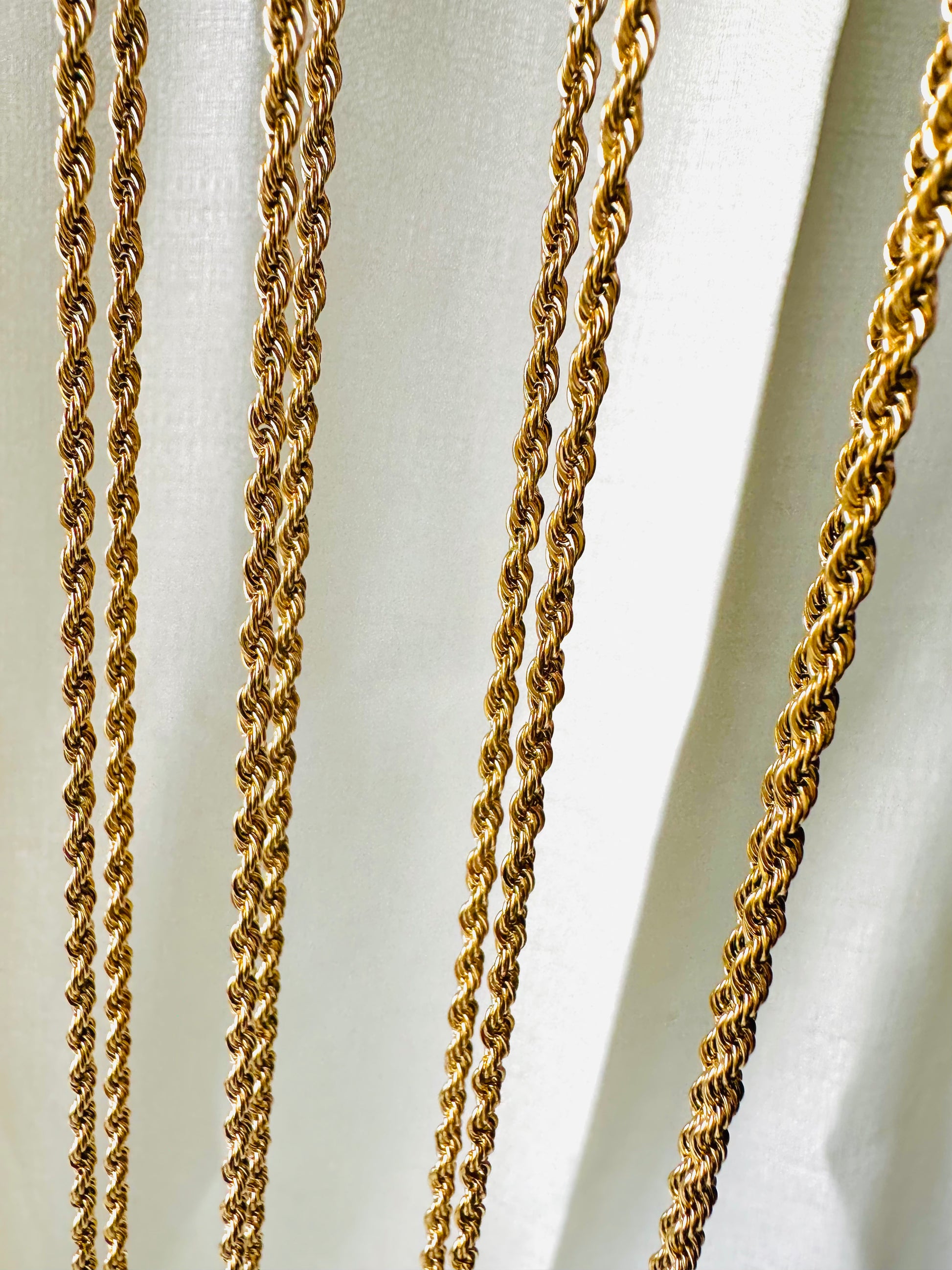 細め 長めの上品なロープチェーン。重ね付けで更にゴーシャス感を出せるアイテムです。